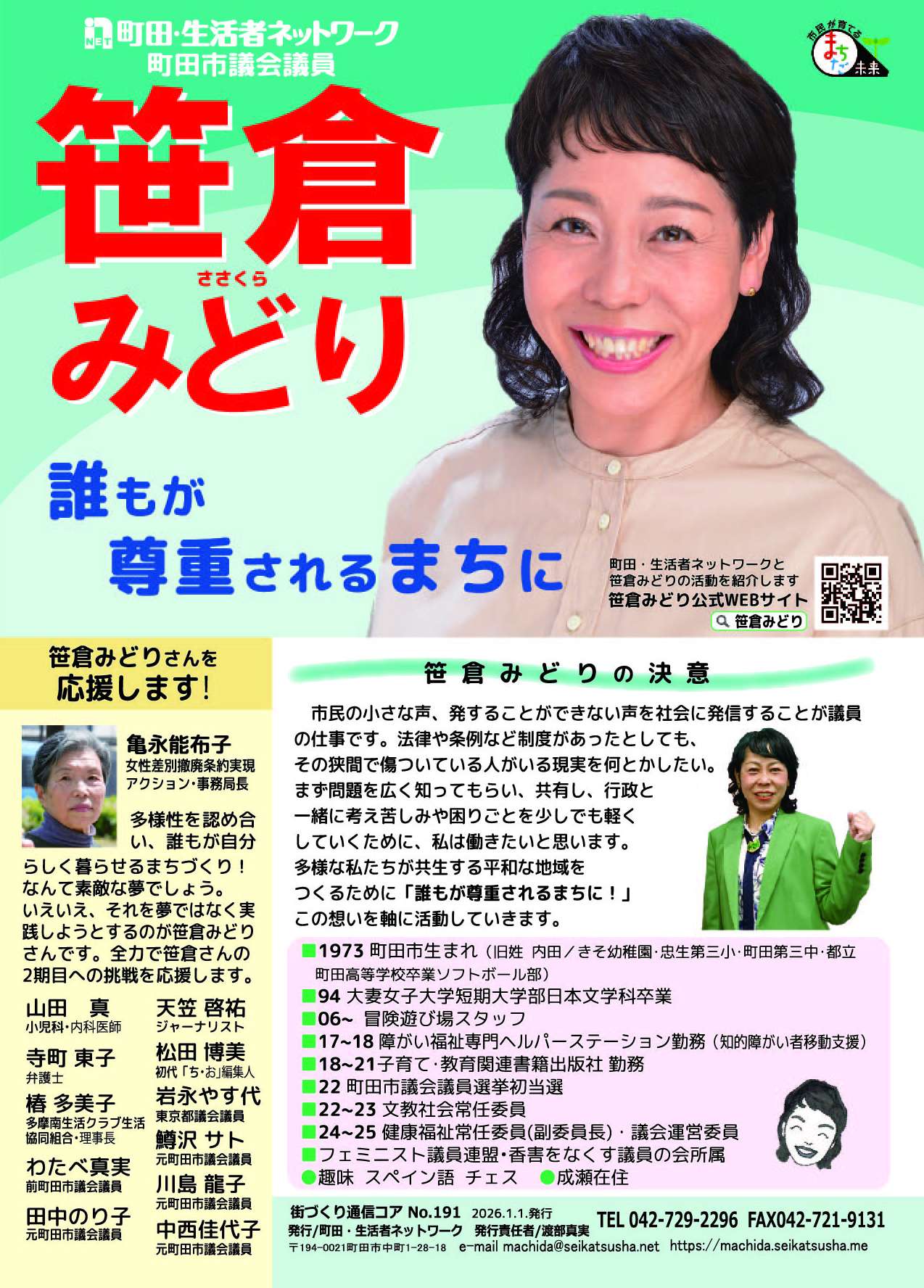 2026年1月7日 / 最終更新日 : 2026年1月7日 machida トピックス 笹倉みどり 議会レポート「街づくり通信コアNo.191」を発行しました 笹倉みどり 議会レポート「街づくり通信コアNo.191」を発行しました パソコンでご覧の時は画面をクリックし、さらにクリックすると拡大されます。 FacebookXCopy