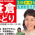 2026年2月8日 / 最終更新日 : 2026年2月8日 machida 2月11日(水・祝)成瀬駅前市民集会 14:00~14:40 お集まりください! 2月11日(水・祝)成瀬駅前市民集会 14:00~14:40 お集まりください!